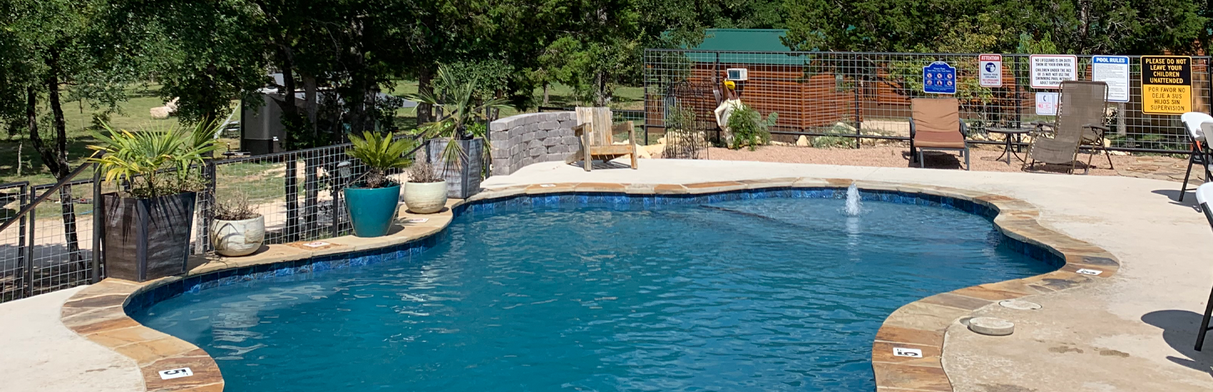 Cute cabins out in the beautiful Texas country. They allow you to use the full kitchen and supplies that are in the outdoor pavilion and that makes the stay perfect for families. No need to lug all your camping supplies with you when you stay in the cabins. They are also super close to Bandera, a cute cowboy town. Great spot with scenic views, great pool, and awesome amenities.