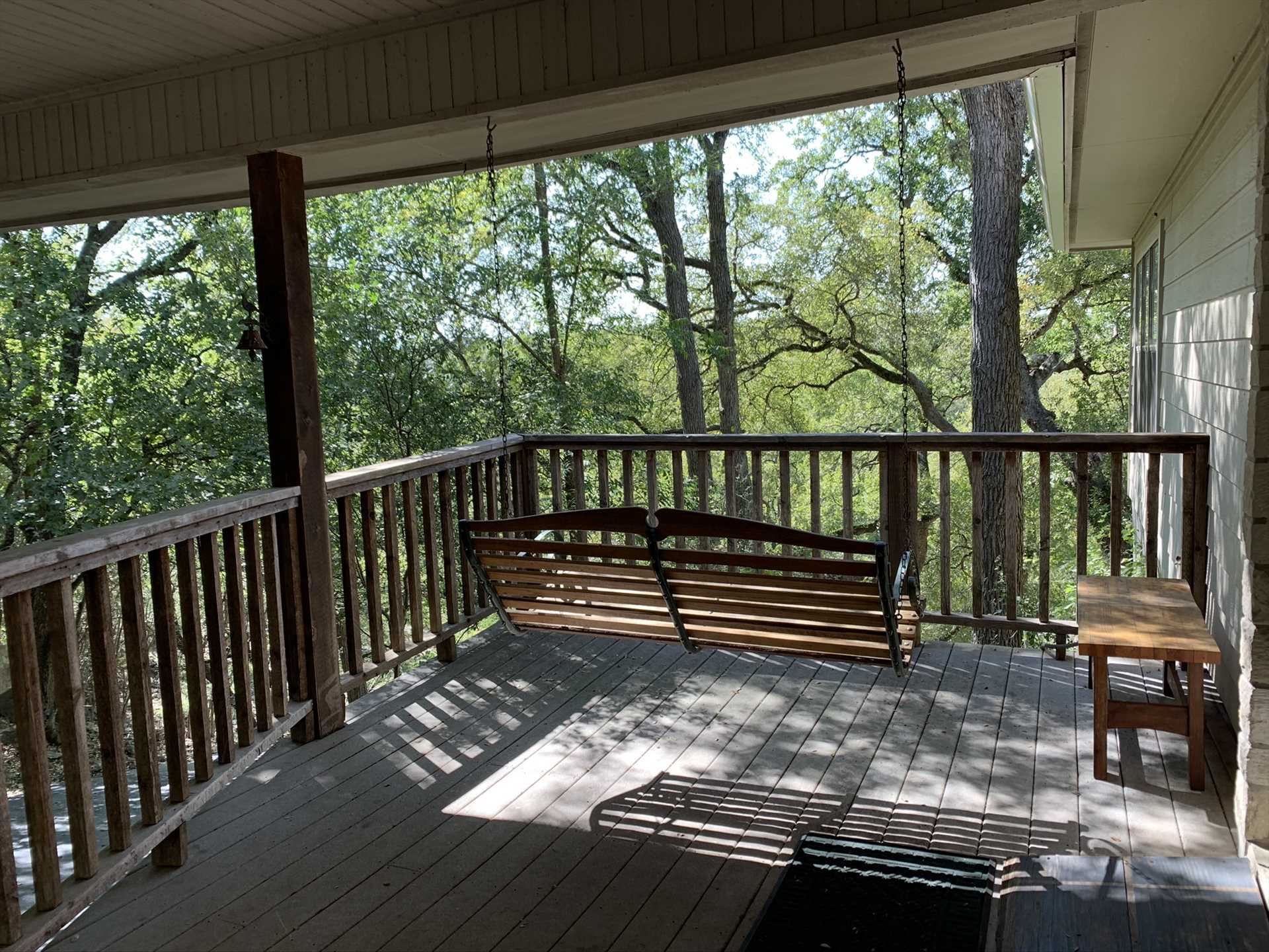 Provides washer and dryer facilities, ceiling fans, outdoor swing overlooking the river, and an outdoor picnic table and swing at the river.