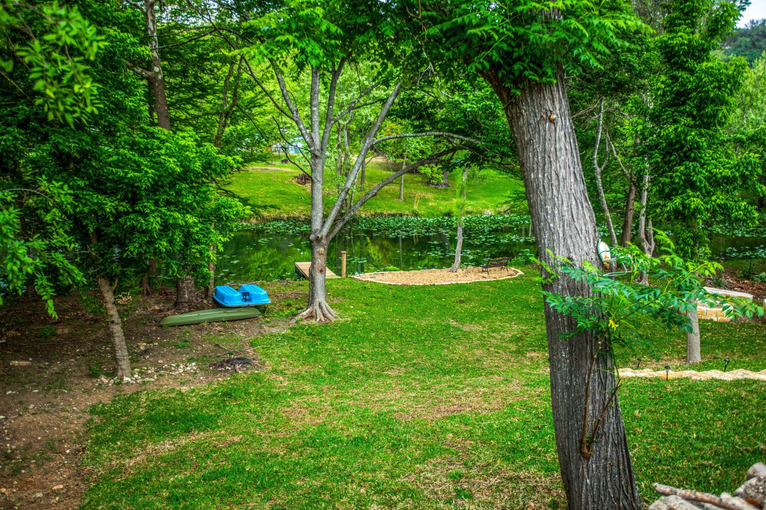 Did we mention your private dock? Yep, it's right there on Turtle Creek, and there's even a kayak and paddle boat you can use to explore its waters. Test your angling skills off the dock, or enjoy a conversation and a snack around the riverside fire pit. While there's plenty to enjoy your backyard, keep in mind the water-based adventure and fun of the Guadalupe River is a short trip away.